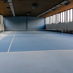 Unsere Tennishalle ermöglicht ganzjähriges Tennisspielen auf gelenkschonendem Teppichgranulat – perfekt bei jedem Wetter.