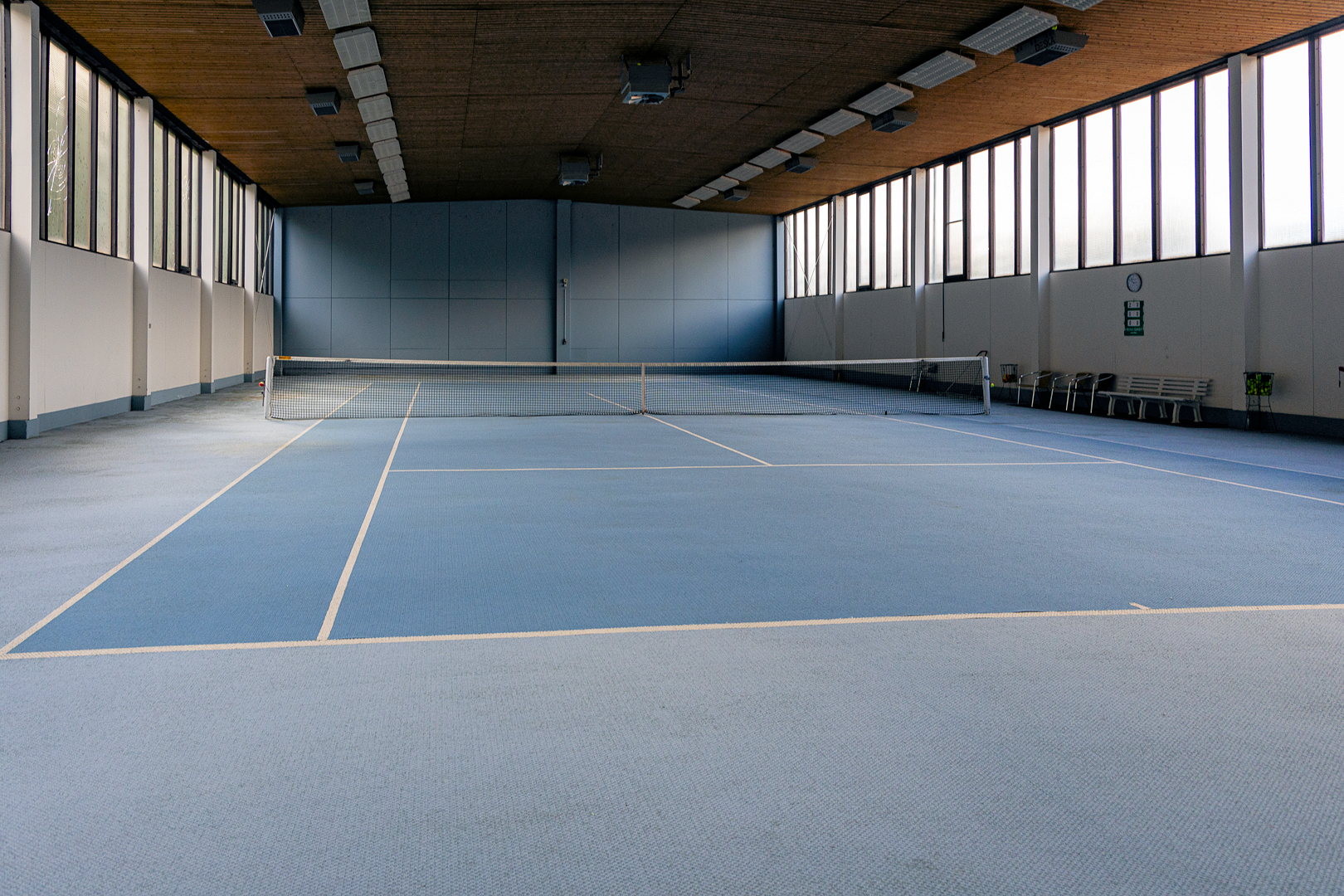 Unsere Tennishalle ermöglicht ganzjähriges Tennisspielen auf gelenkschonendem Teppichgranulat – perfekt bei jedem Wetter.